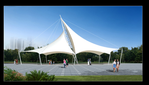膜結構作為一種新型建筑形式,所用的材料和技術均不同于傳統結構。膜結構以造型學、色彩學為依托,可結合自然條件及民族風情,根據建筑師的創意建造出傳統建筑難以實現的曲線及造型。膜結構的特點要求在方案設計時考慮結構的可行性與美觀性相結合,根據現場條件與客戶需求,設計出美觀實用的膜結構造型。